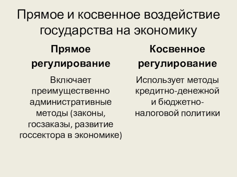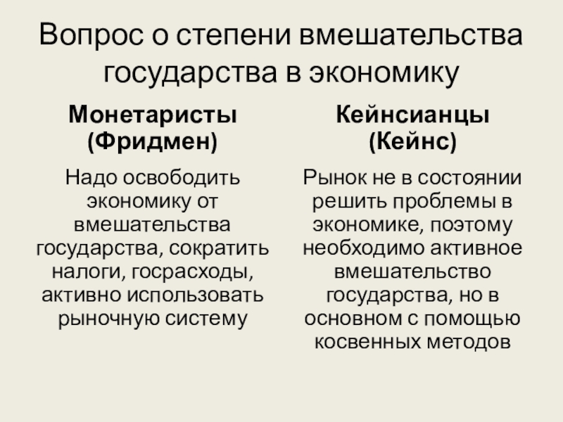 Рынок не в состоянии решить проблемы в экономике, поэтому необходимо активное вмешательство государства, но в основном с помощью косвенных методов