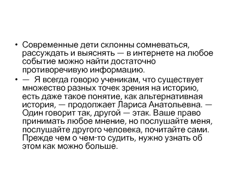 Слайд 20Современные дети склонны сомневаться, рассуждать и выяснять — в интернете на любое событие можно