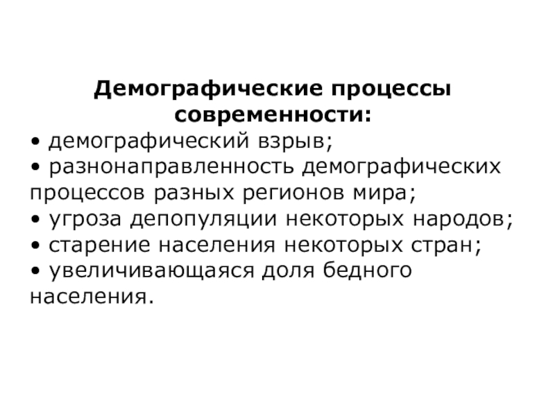 Слайд 18Демографические процессы современности: