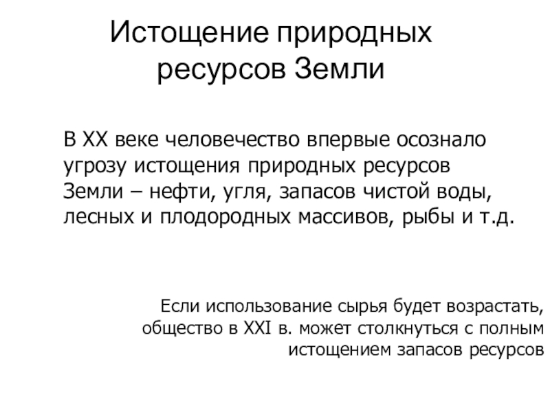 В XX веке человечество впервые осознало угрозу истощения