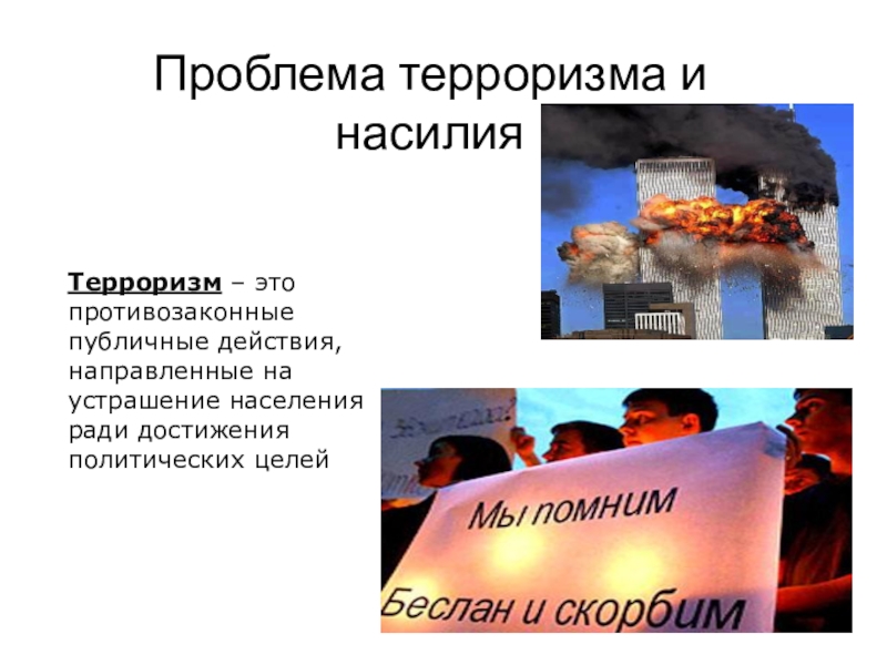 Слайд 21Проблема терроризма и насилия