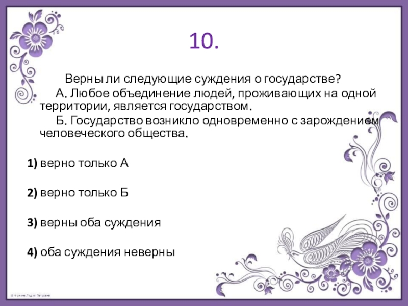 А. Любое объединение людей, проживающих на одной территории, является государством.