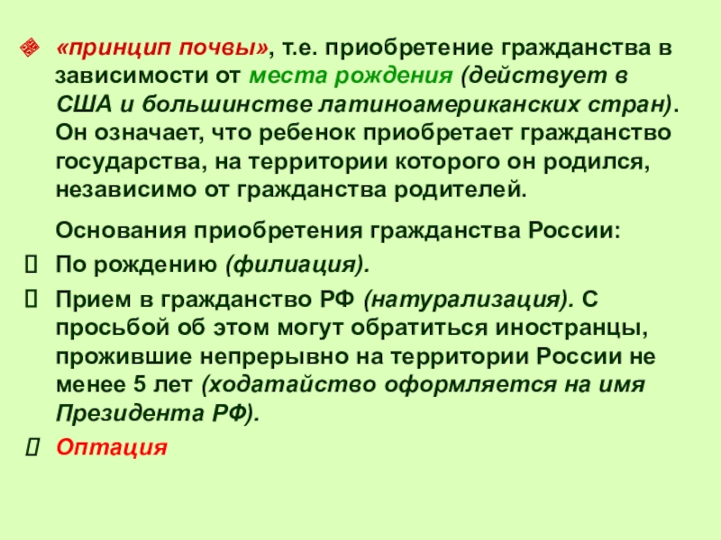 Принципы приобретения гражданства