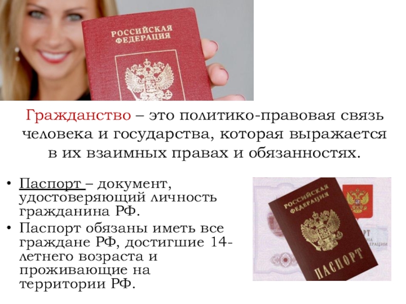 Паспорт обязаны иметь все граждане РФ, достигшие 14-летнего возраста и проживающие на территории РФ.