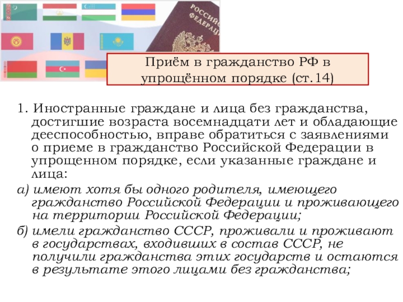 Приём в гражданство РФ в упрощённом порядке (ст.14)