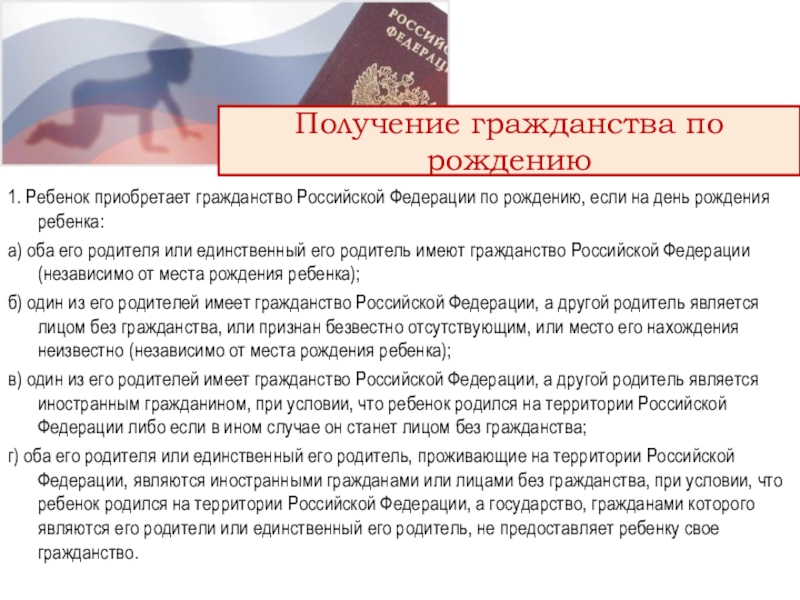 Приобретение гражданства в зависимости от места рождения (в случае рожде-ния на террито-рии страны)