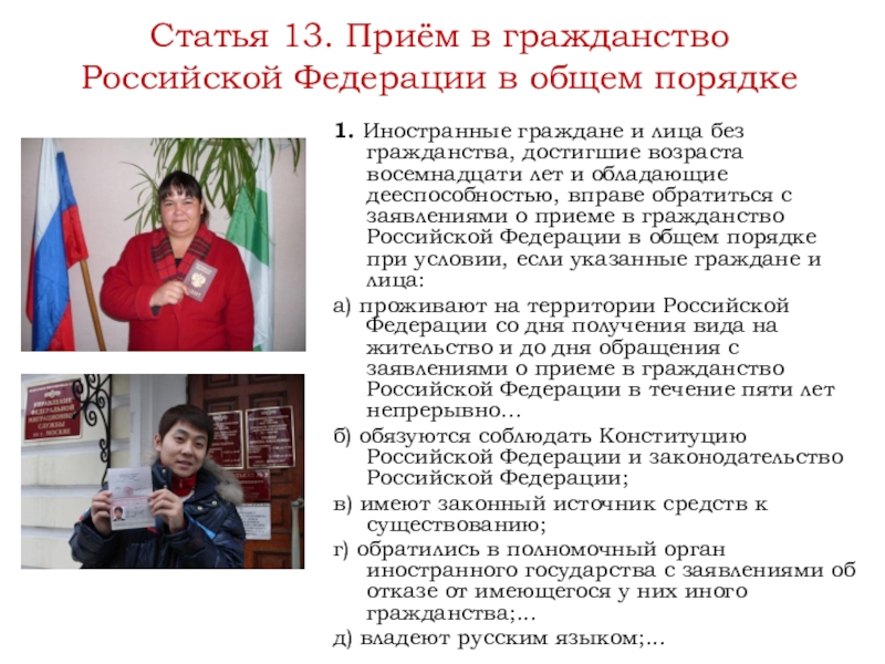 Статья 13. Приём в гражданство Российской Федерации в общем порядке