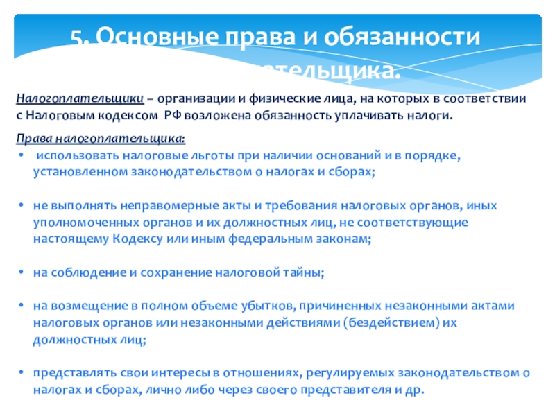 использовать налоговые льготы при наличии оснований и в порядке, установленном законодательством о налогах и сборах;