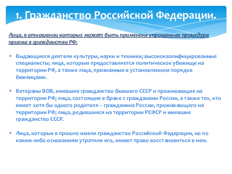 6. По какому(-им) обстоятельству(-ам) предусматривается упрощенная процедура получения гражданства?