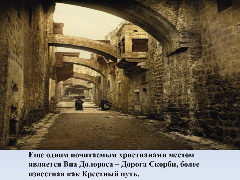 Слайд 11Еще одним почитаемым христианами местом является Виа Долороса – Дорога Скорби,