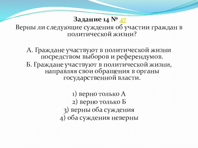 Верны ли следующие суждения об участии граждан в политической жизни?