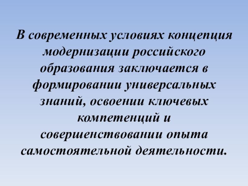Слайд 3В современных условиях концепция модернизации российского образования заключается в формировании универсальных