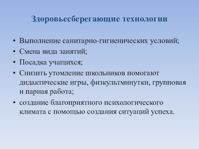 школьников помогают дидактические игры, физкультминутки, групповая и парная работа;