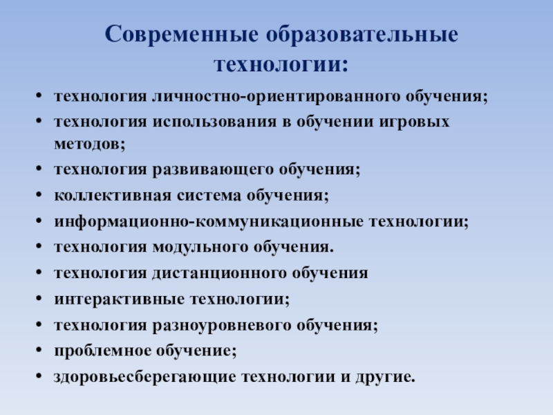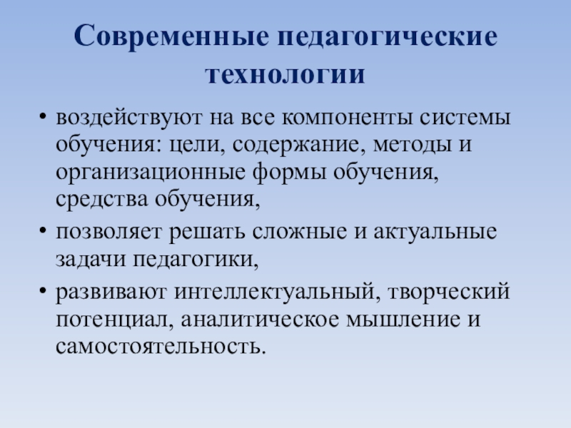 воздействуют на все компоненты системы обучения: цели, содержание, методы