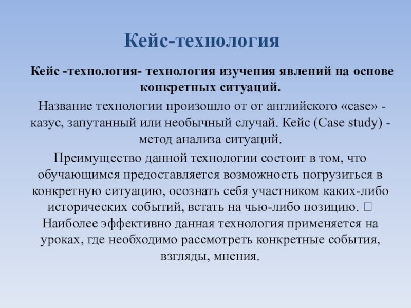 Кейс -технология- технология изучения явлений на основе конкретных ситуаций.