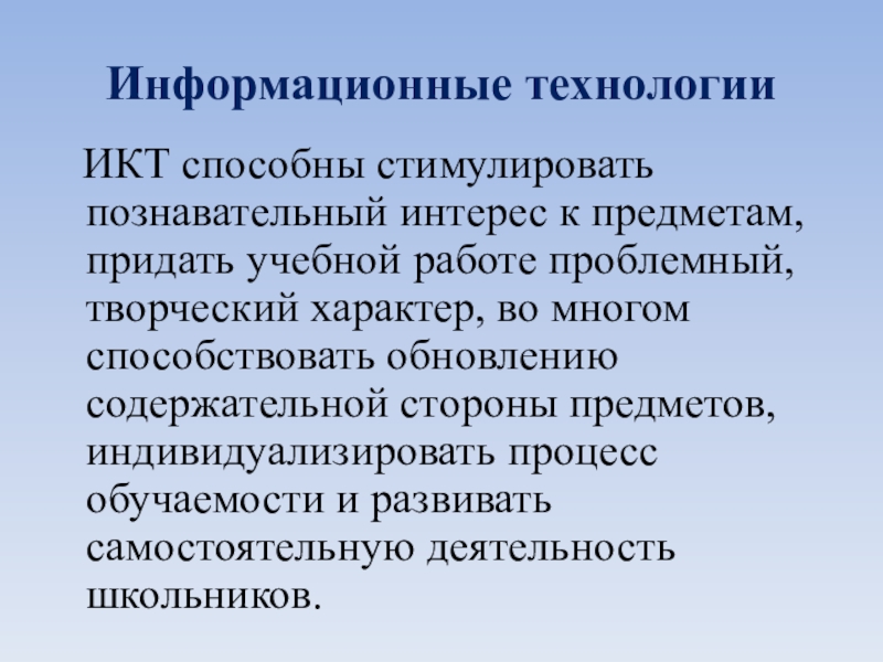 ИКТ способны стимулировать познавательный интерес к предметам, придать