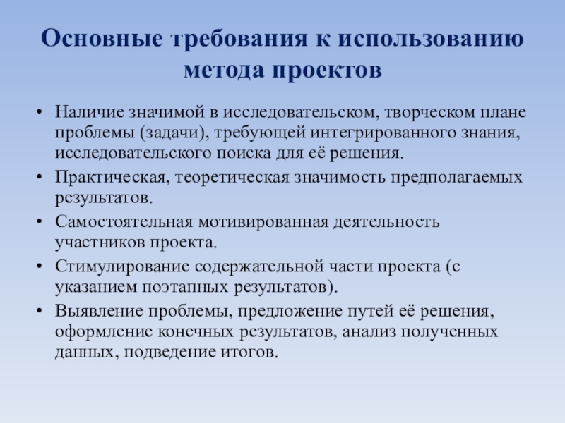 предполагающим владение определённой суммой знаний, и через проектную деятельность показать практическое применение полученных знаний. Другими словами, от теории к практике.