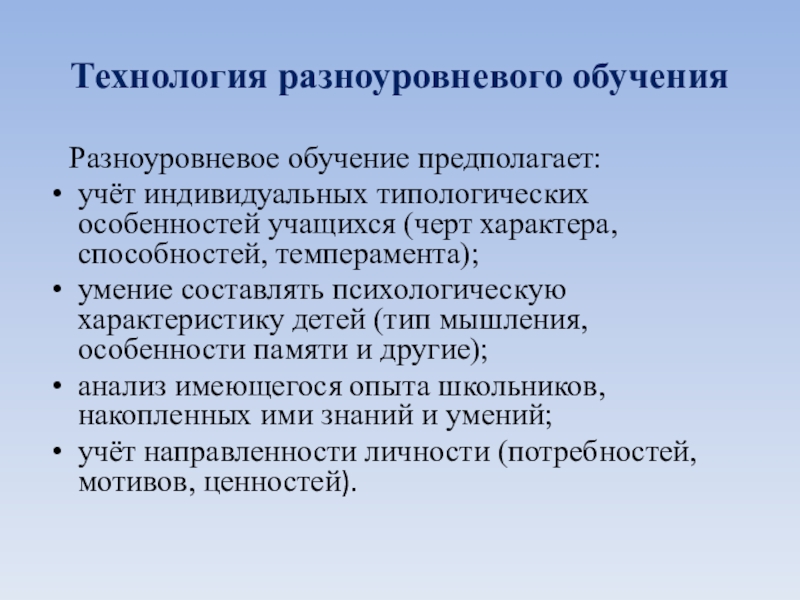 учёт направленности личности (потребностей, мотивов, ценностей).