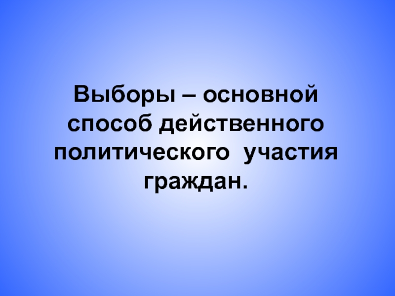 Слайд 2Выборы – основной способ действенного политического участия граждан.
