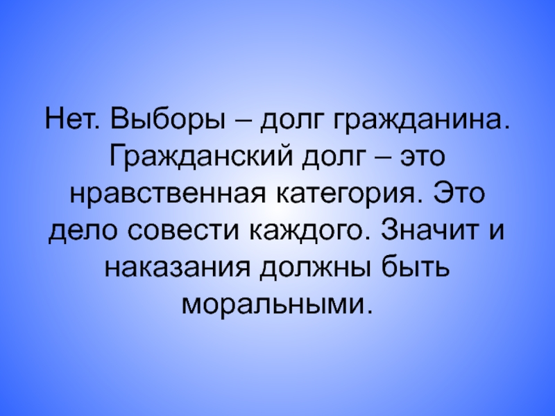 Слайд 14Нет. Выборы – долг гражданина. Гражданский долг – это нравственная категория.