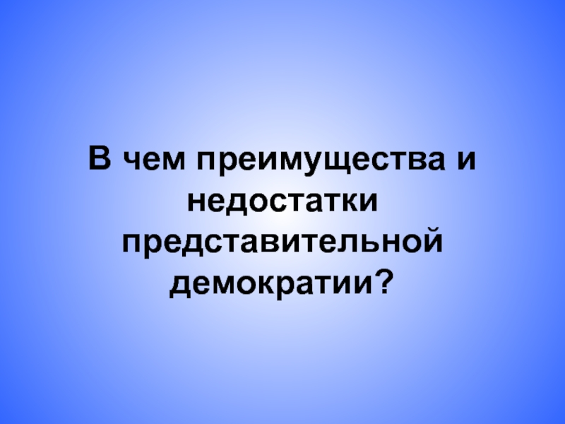 Слайд 9В чем преимущества и недостатки представительной демократии?