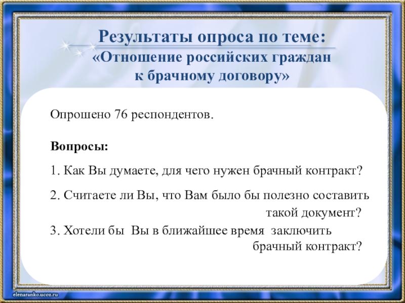 «Хотели бы Вы в ближайшее время заключить брачный контракт?»