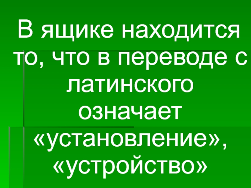 Слайд 8 В ящике находится то, что в переводе с латинского означает