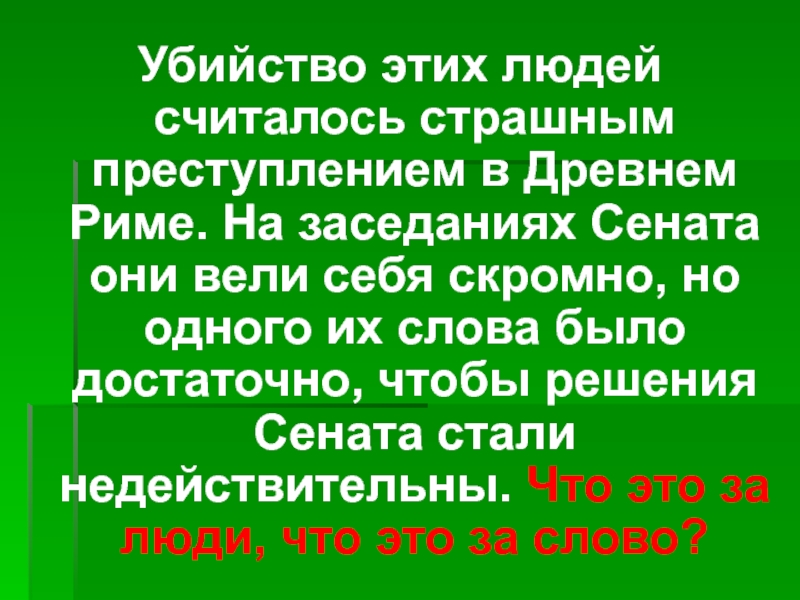 Сената они вели себя скромно, но одного их слова было достаточно, чтобы решения Сената стали недействительны. Что это за люди, что это за слово?