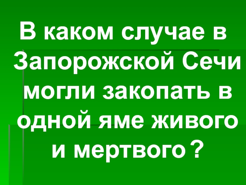 Слайд 30В каком случае в Запорожской Сечи могли закопать в одной яме