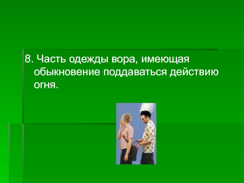8. Часть одежды вора, имеющая обыкновение поддаваться действию огня