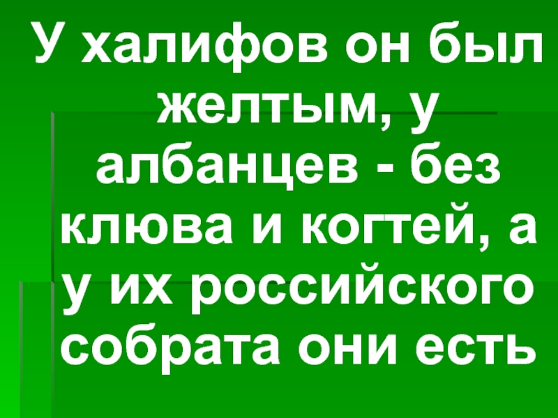 Слайд 7У халифов он был желтым, у албанцев - без клюва и