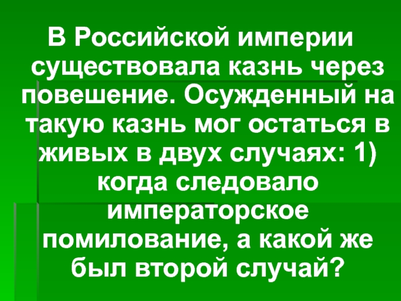 Слайд 29В Российской империи существовала казнь через повешение. Осужденный на такую казнь