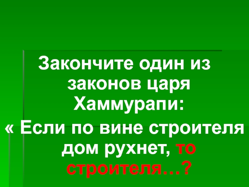 Слайд 25Закончите один из законов царя Хаммурапи: