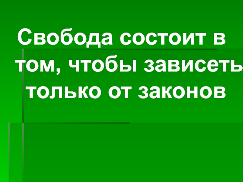 Слайд 4Свобода состоит в том, чтобы зависеть только от законов