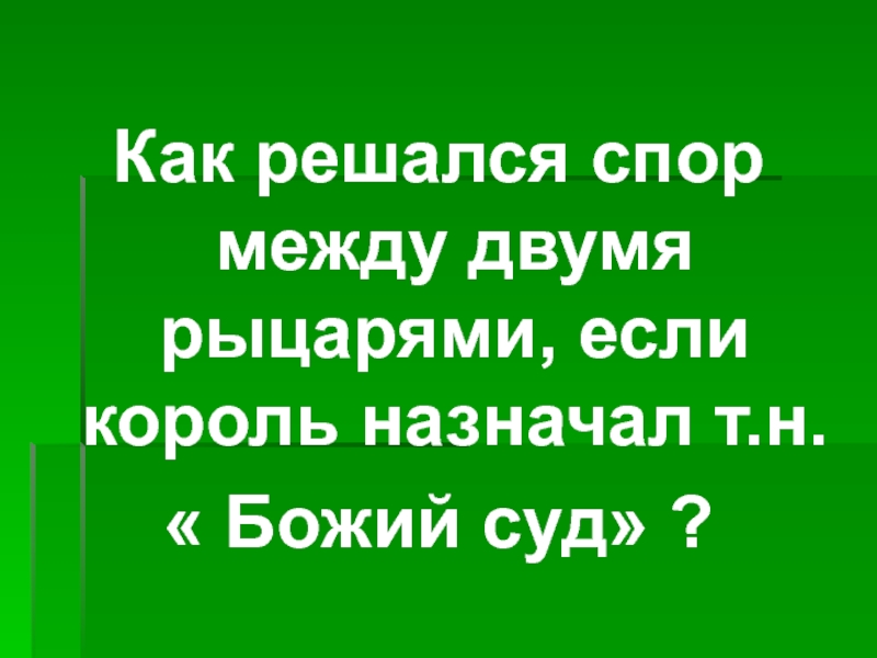 Слайд 28Как решался спор между двумя рыцарями, если король назначал т.н.