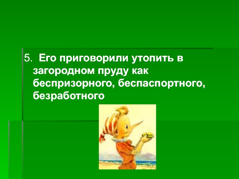 5. Его приговорили утопить в загородном пруду как беспризорного, беспаспортного, безработного