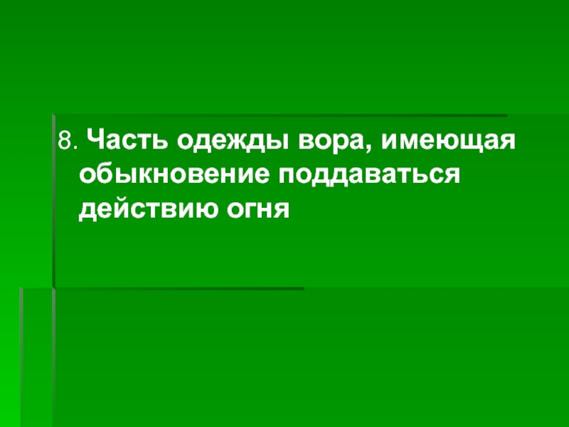 8. Часть одежды вора, имеющая обыкновение поддаваться действию огня.