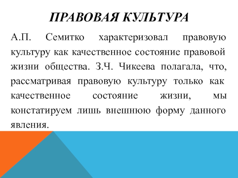 Слайд 7А.П. Семитко характеризовал правовую культуру как качественное состояние правовой жизни общества.
