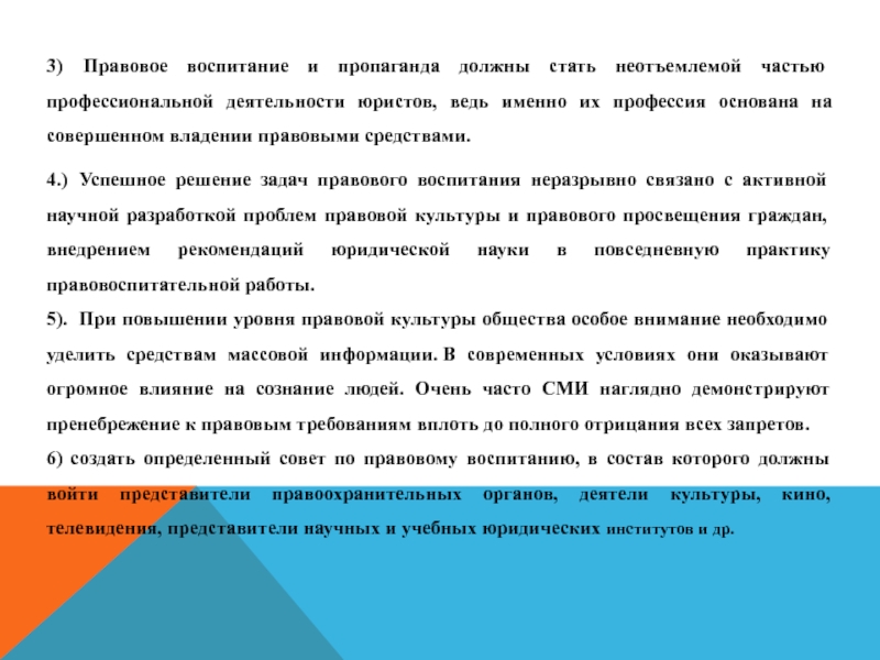 Слайд 273) Правовое воспитание и пропаганда должны стать неотъемлемой частью профессиональной деятельности