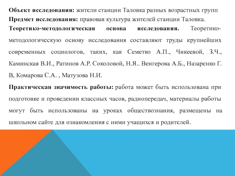 Слайд 6Объект исследования: жители станции Таловка разных возрастных групп
