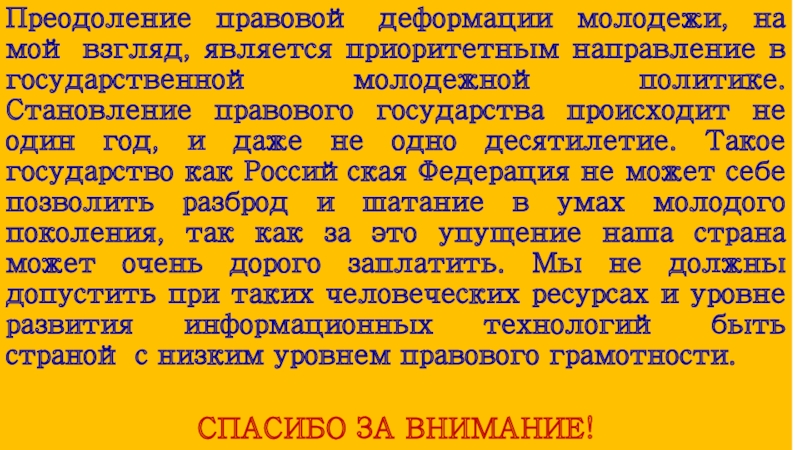 Выявление круга интересов, возможных мотивов к пересмотру данной деформированной позиции в отношении к праву;