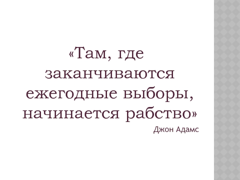 «Там, где заканчиваются ежегодные выборы, начинается рабство»Джон Адамс