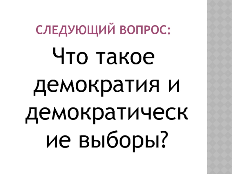 Следующий вопрос:Что такое демократия и демократические выборы?