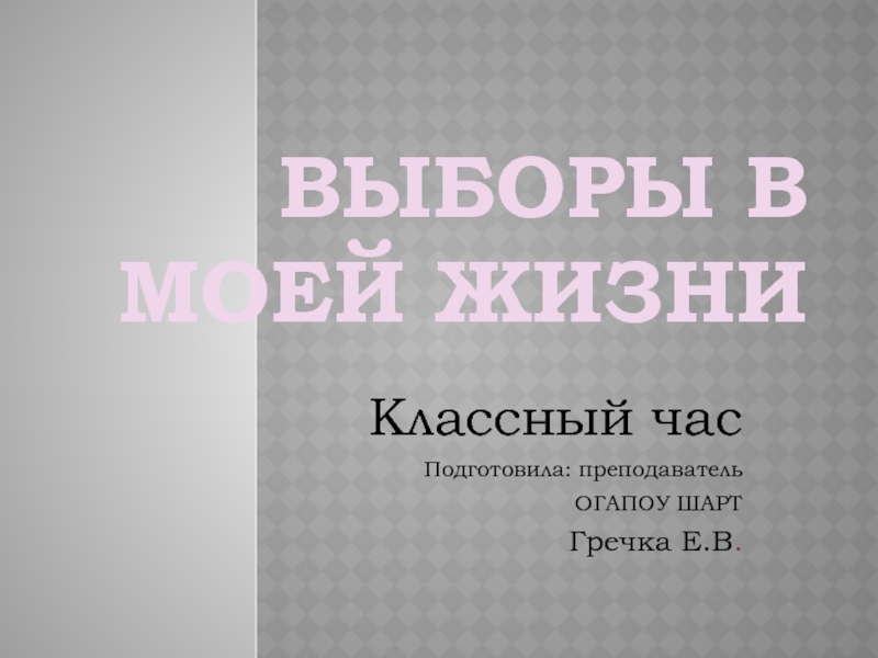 Выборы в моей жизниКлассный часПодготовила: преподаватель ОГАПОУ ШАРТГречка Е.В.