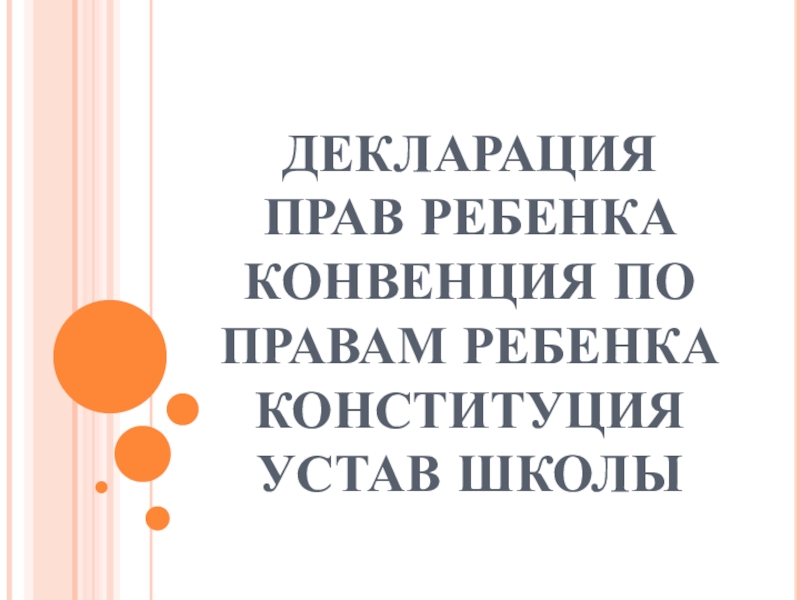 Слайд 2 ДЕКЛАРАЦИЯ ПРАВ РЕБЕНКА КОНВЕНЦИЯ ПО ПРАВАМ РЕБЕНКА КОНСТИТУЦИЯ УСТАВ ШКОЛЫ