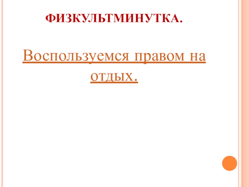 ФИЗКУЛЬТМИНУТКА. Воспользуемся правом на отдых.