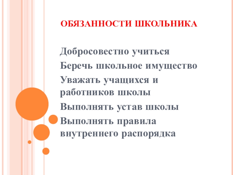 Слайд 4ОБЯЗАННОСТИ ШКОЛЬНИКА