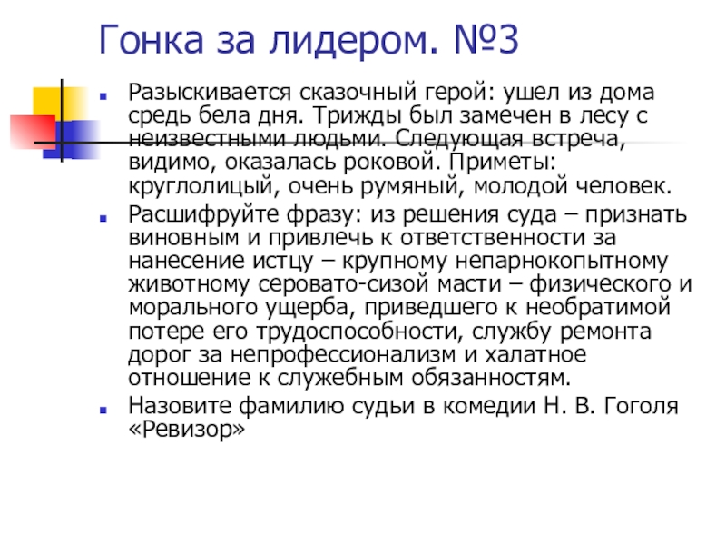 Слайд 7Гонка за лидером. №3