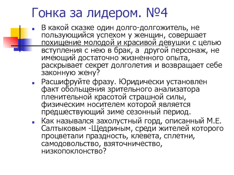 Слайд 8Гонка за лидером. №4