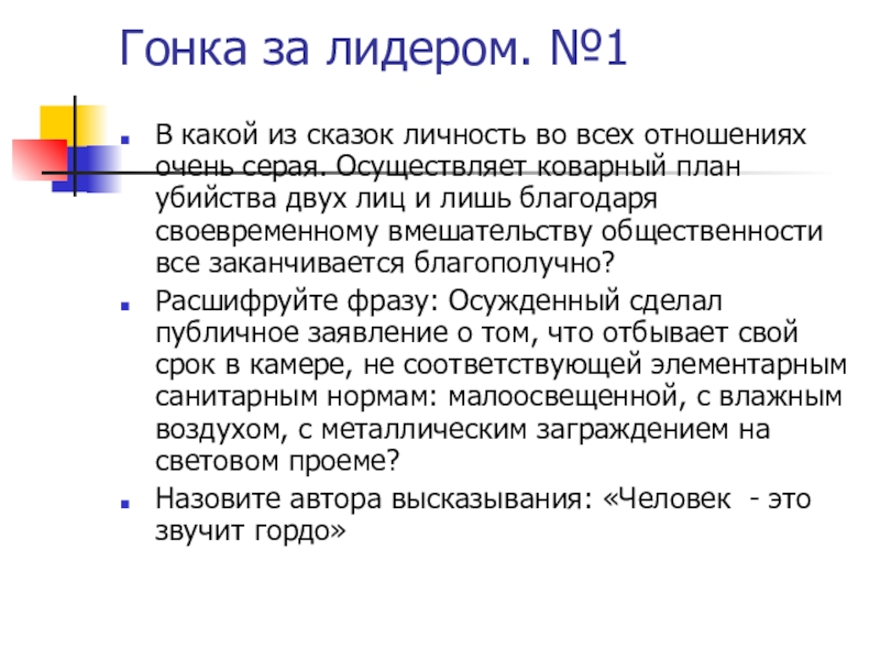 Слайд 5Гонка за лидером. №1